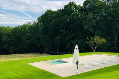 Réalisation d'une piscine et d'un spa intégré 14 x 3 m avec escalier d'angle intérieur à Arcangues (64) :