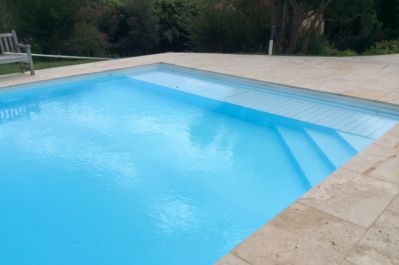 Réalisation d'une piscine rectangulaire 12x6m avec escaliers d'angle 3 marches à Ossès (64) :